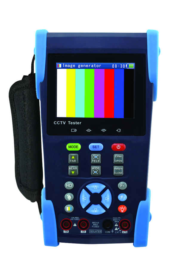DISCONTINUED: The SecurityTronix ST-HDoC-MM is designed for maintenance and installation of HD-CVI, HD-TVI, AHD, SDI and analog cameras as well as other security equipment. Its 3.5” 480 x 320 resolution screen enables it to display images from HD cameras and analog cameras in top quality. The unit supports HD over coax, PTZ, ONVIF PTZ and analog PTZ controls. It includes the ability to test UTP cables while verifying the sequence of the individual conductors. The meters portability, user-friendly design and multi-function capability make it an essential tool for installers and technicians, greatly improving work efficiency and simplifying installations and system maintenance.